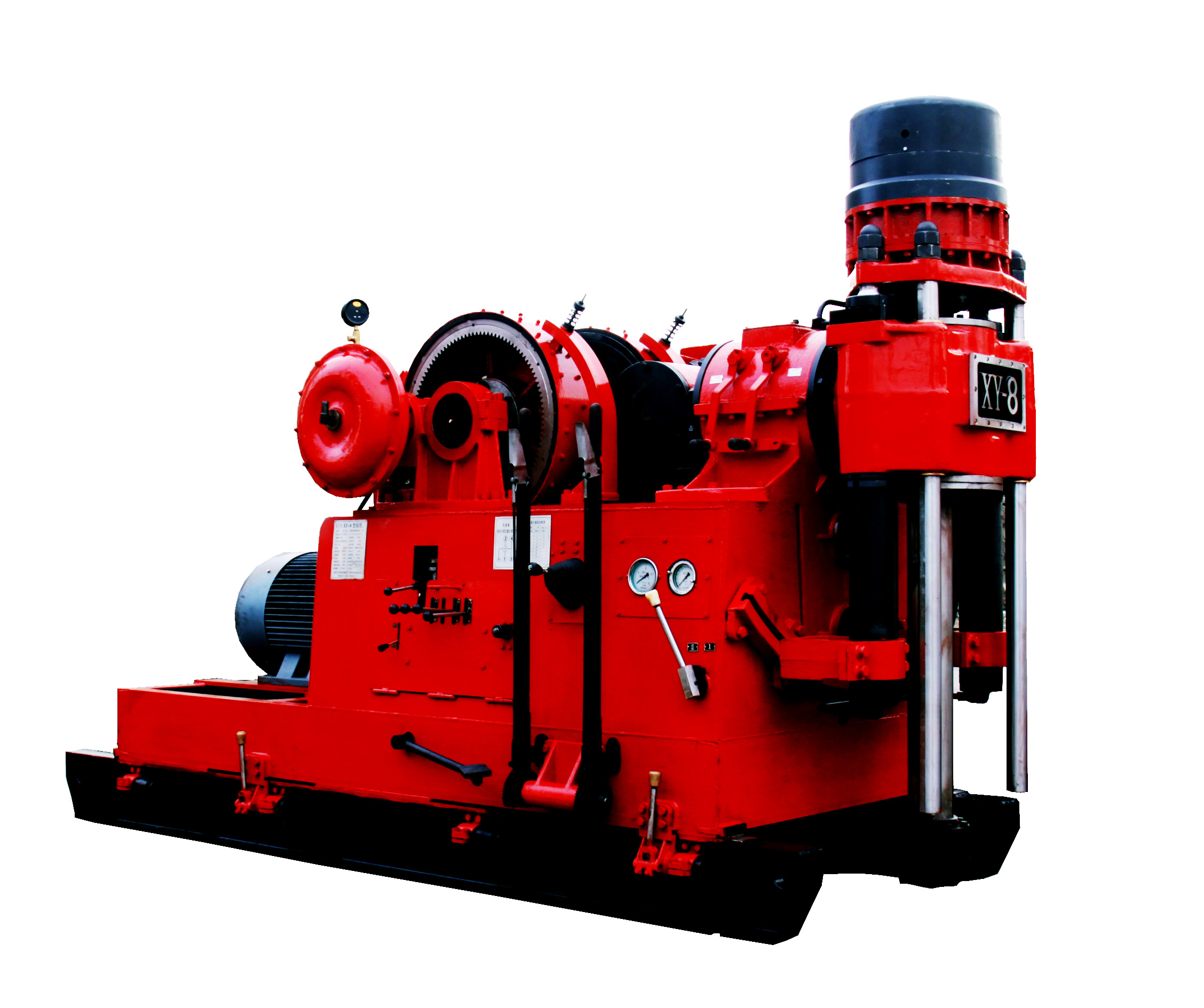 XY-8型鉆機(jī)是我公司新研制的一種大通徑(通徑φ118mm)深孔(1000m-3000m)巖心鉆機(jī)。主要用于金屬、非金屬固體礦床勘探,金剛石小口徑鉆進(jìn),亦可用于大口徑合金鉆進(jìn)。可鉆垂直孔和傾斜孔。也可用于水文、油氣田的勘探及工程鉆孔。